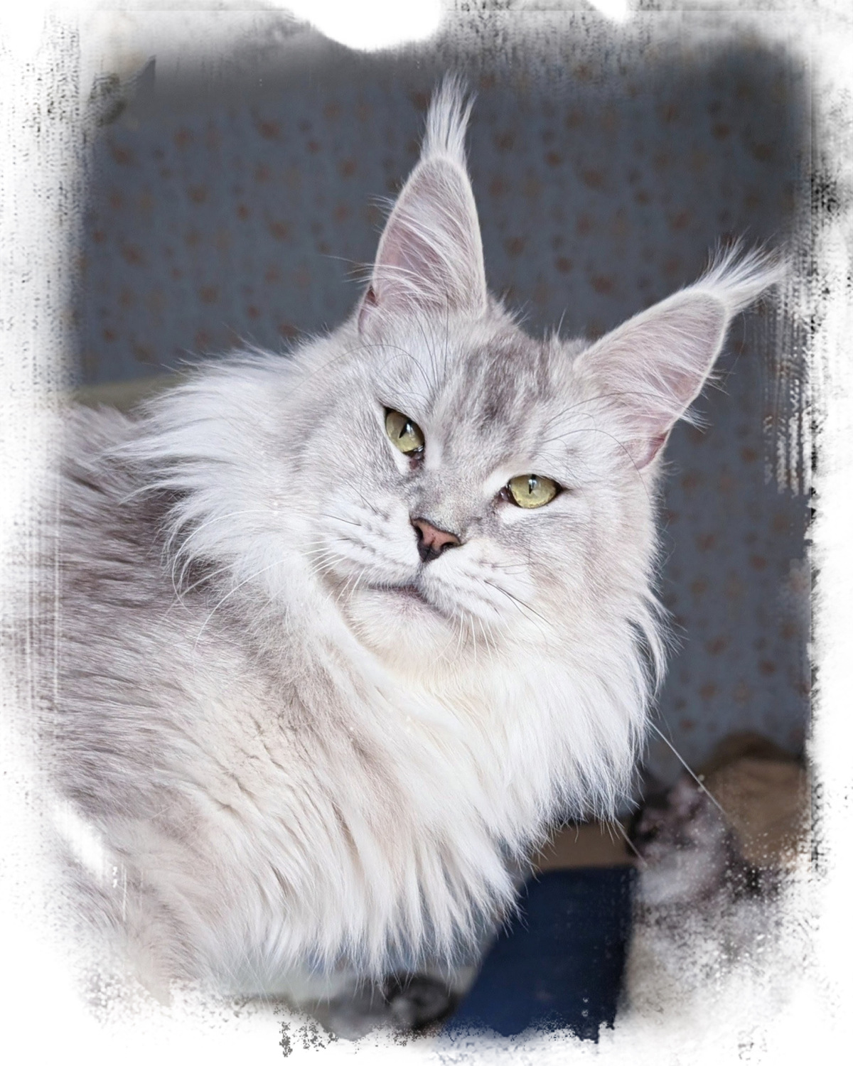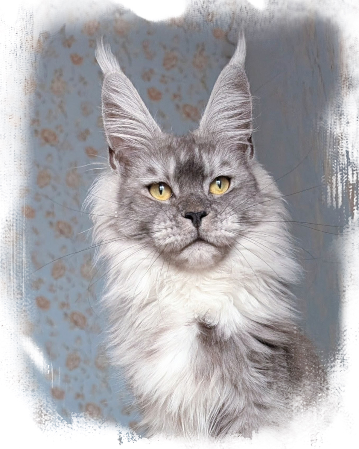 She has the kindest and most charming personality, pale clear silver, a wonderful profile, a good coat and big tassels on ears.