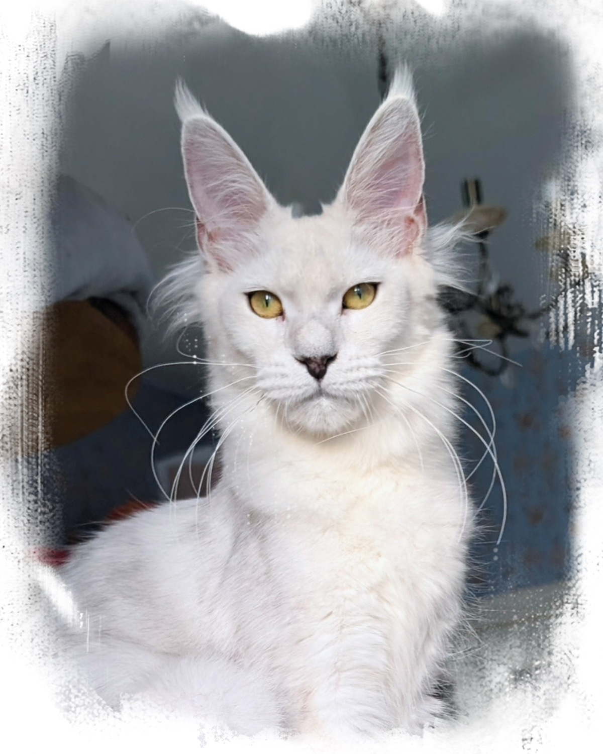 She has odd eyes, clear smoke color, a great muzzle and chin, a strong body structure, big ear tassels.