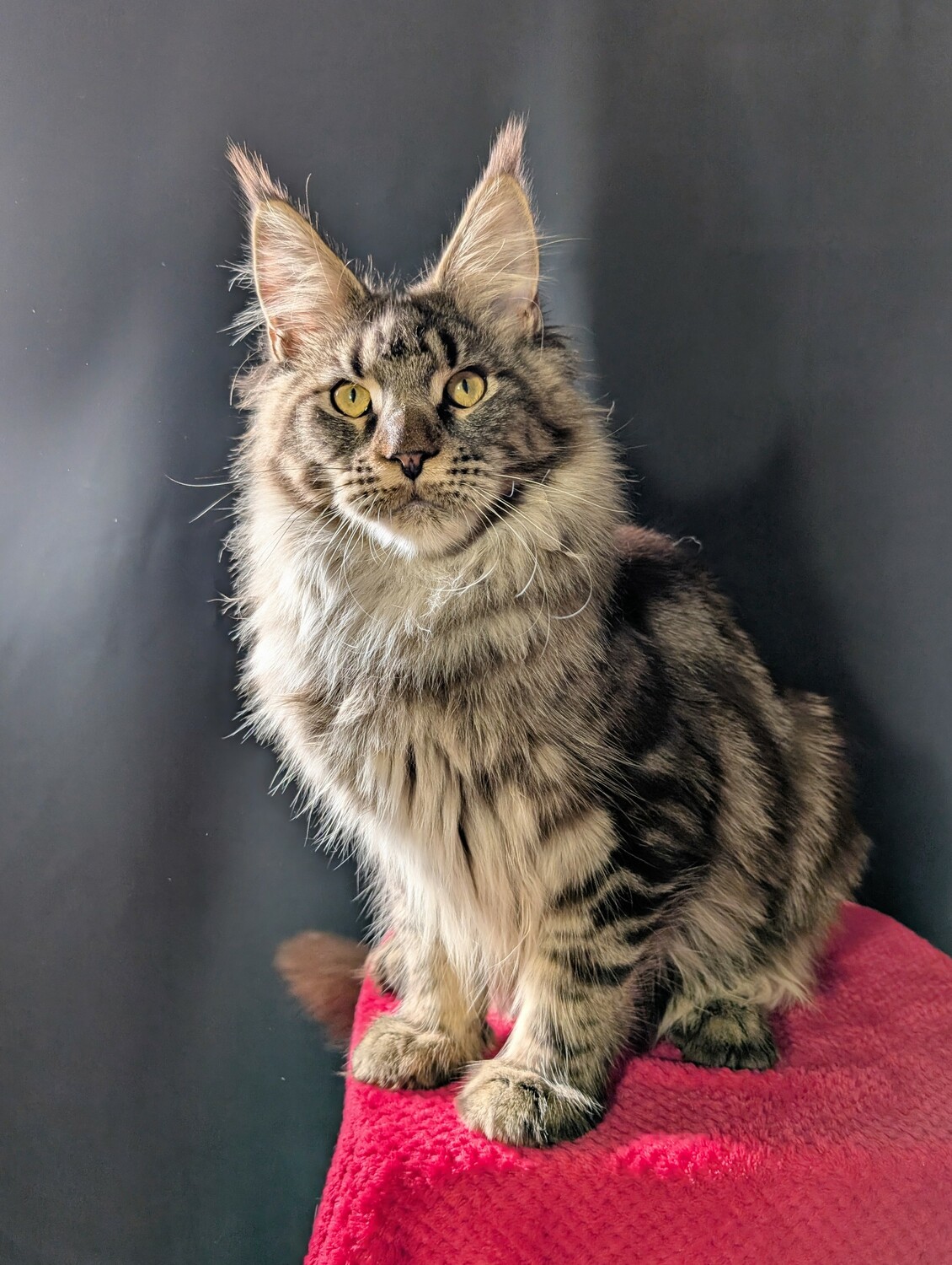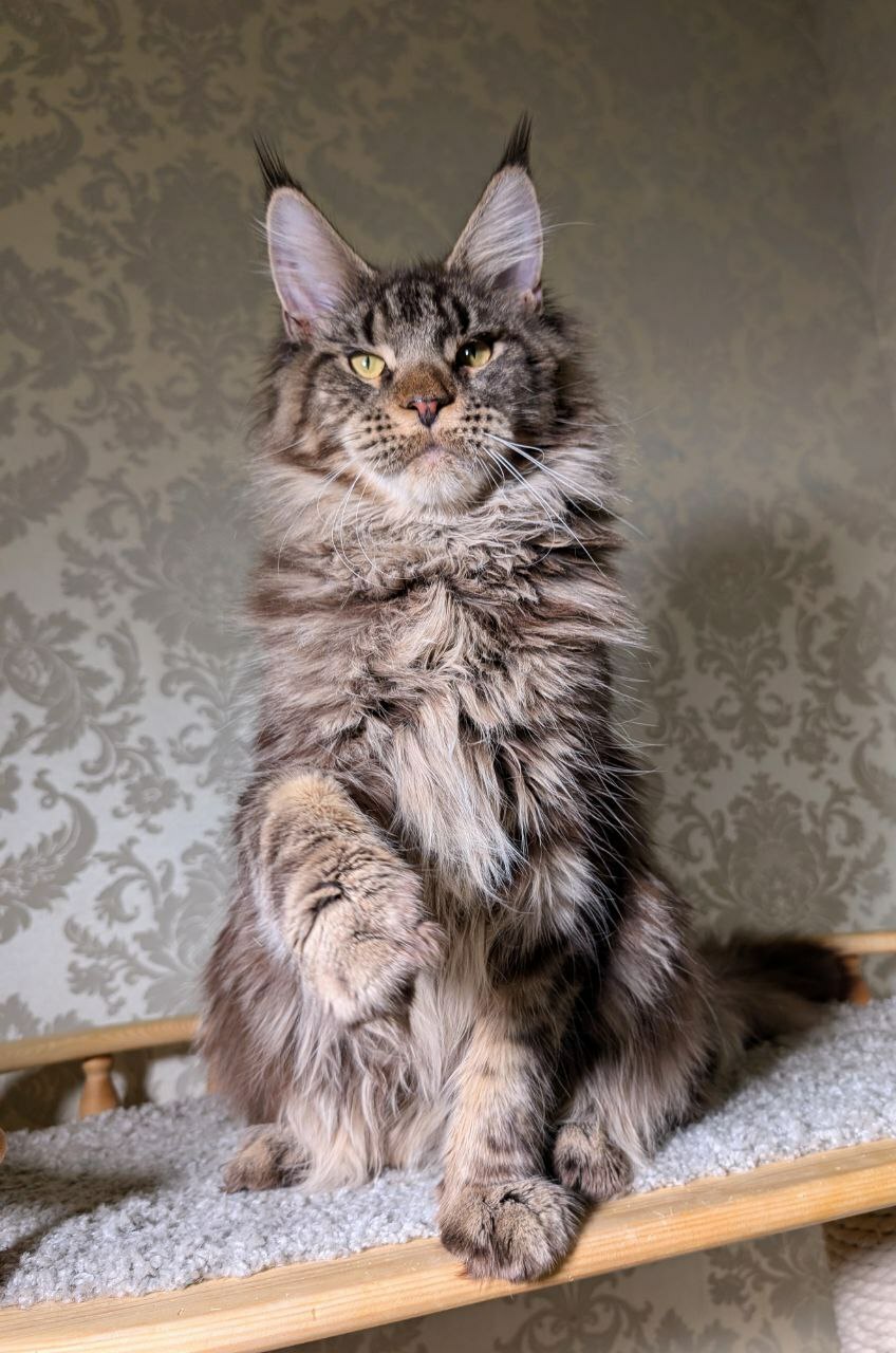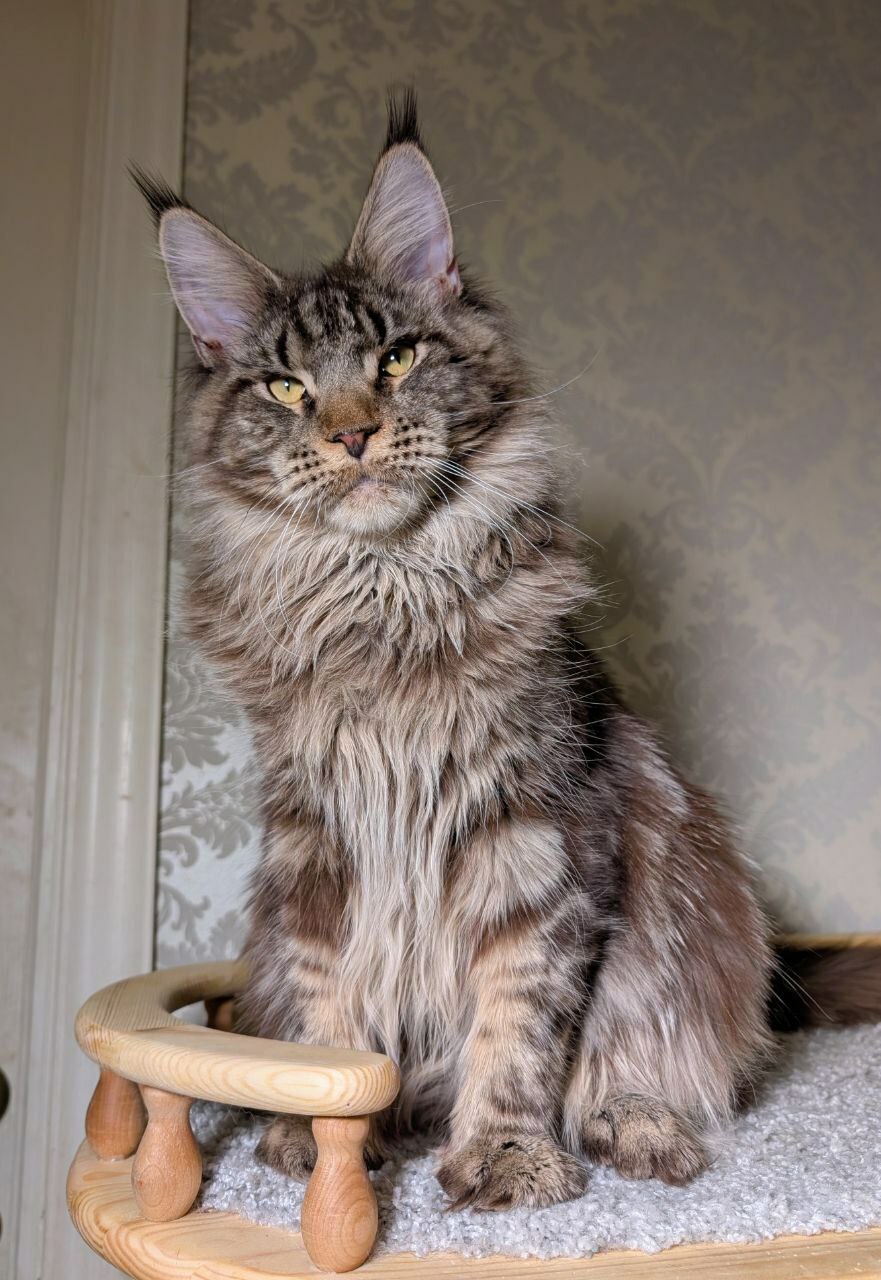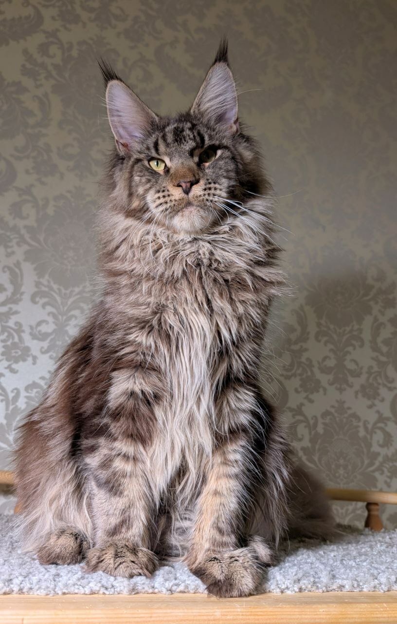 This boy has a very strong type - a wide muzzle with a developed chin, lots of charisma in hia look, a broad body, distinct classic tabby pattern, excellent fur.