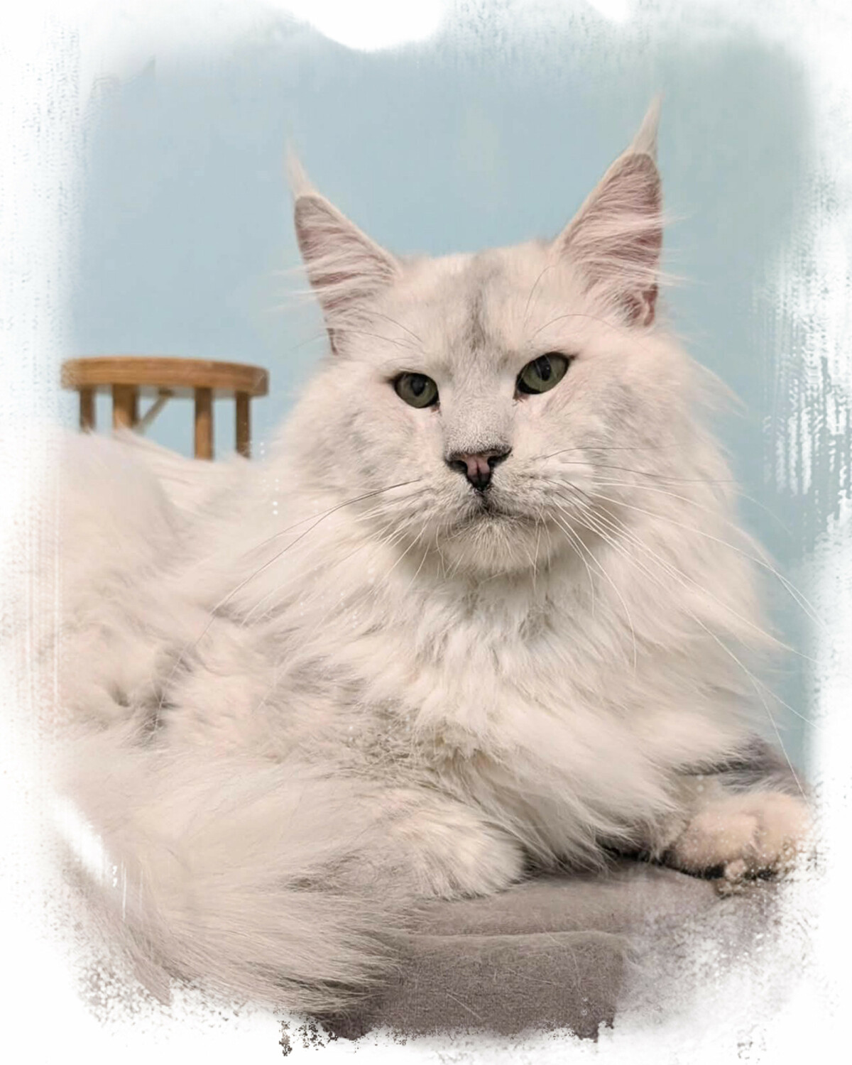She inherited bright green eyes from her dad, also a super coat with wonderful silver and she is in the pedigree of most of the girls of our breeding.