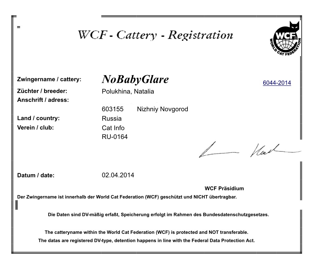 Я занимаюсь разведением мейн кунов более 10 лет. Мой питомник зарегистрирован в двух международных фелинологических системах WCF и WFA.